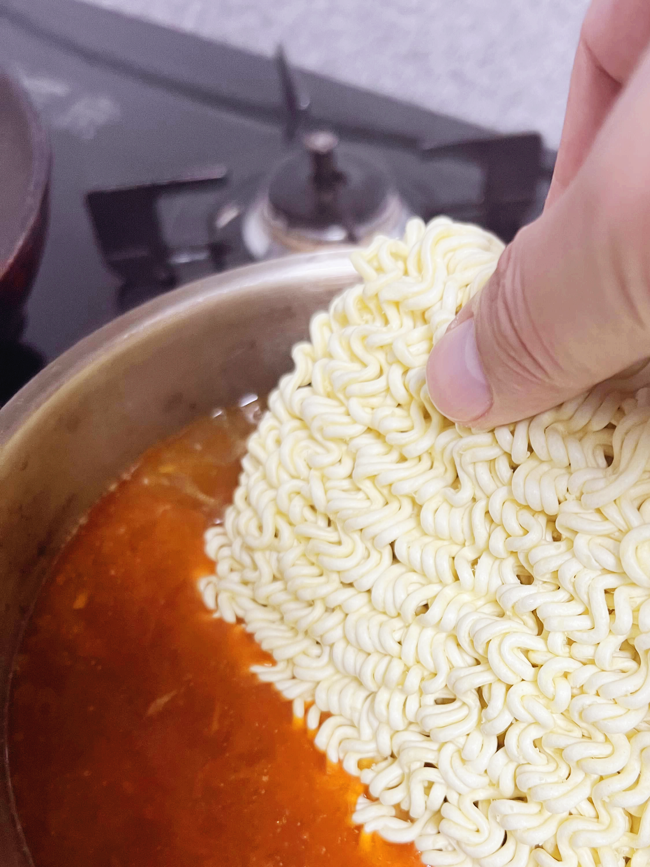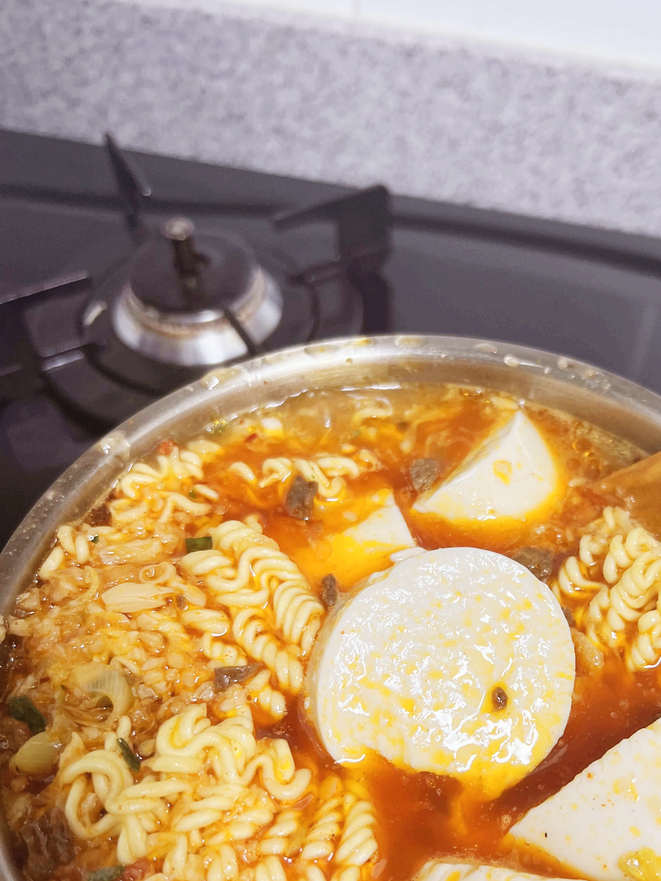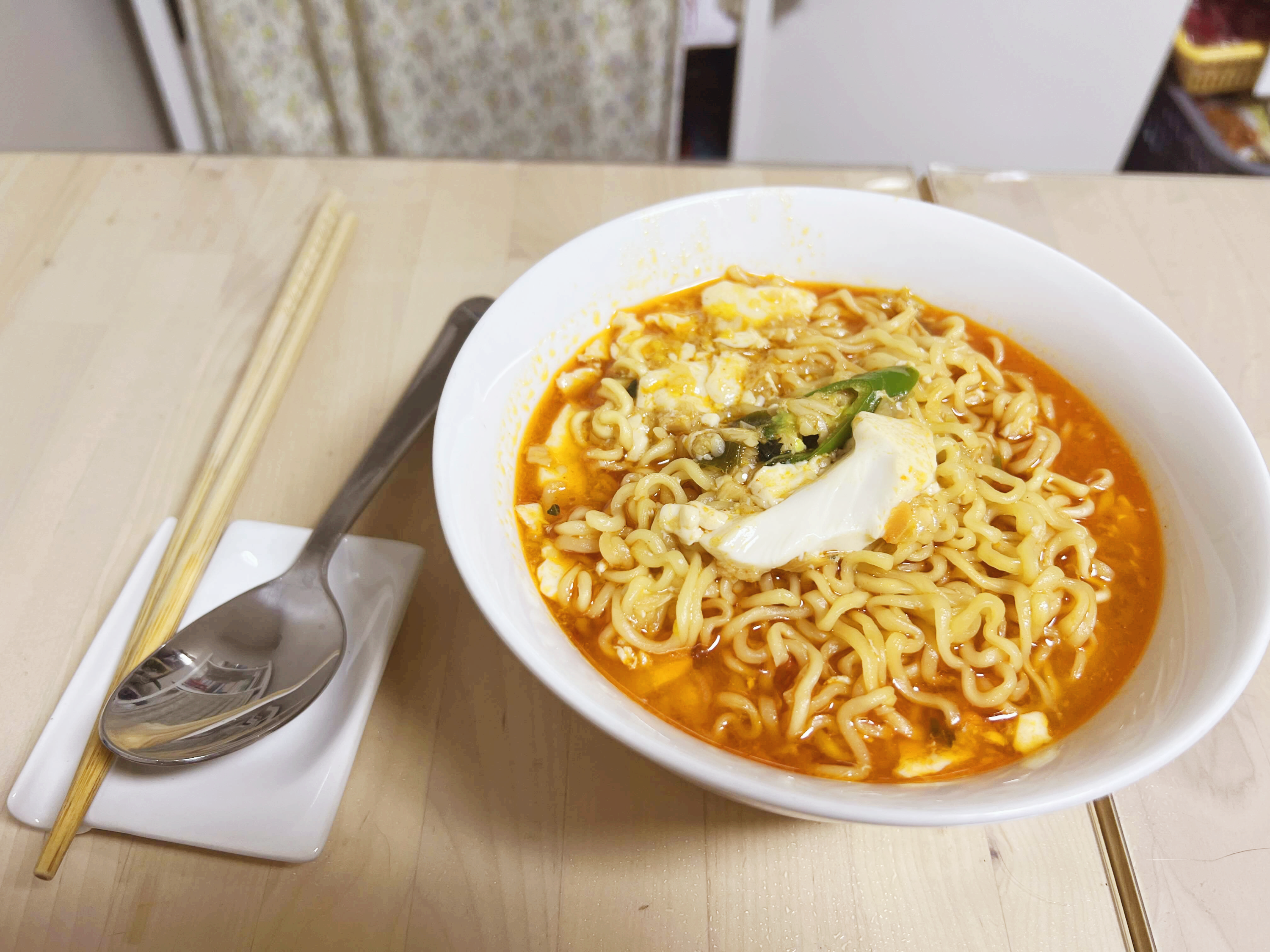라면이 반정도 익은 상태에서 순두부를 넣고 좀더 끓여서 라면이 거의 다 익은 상태에서 불을 꺼주면 되겠다.