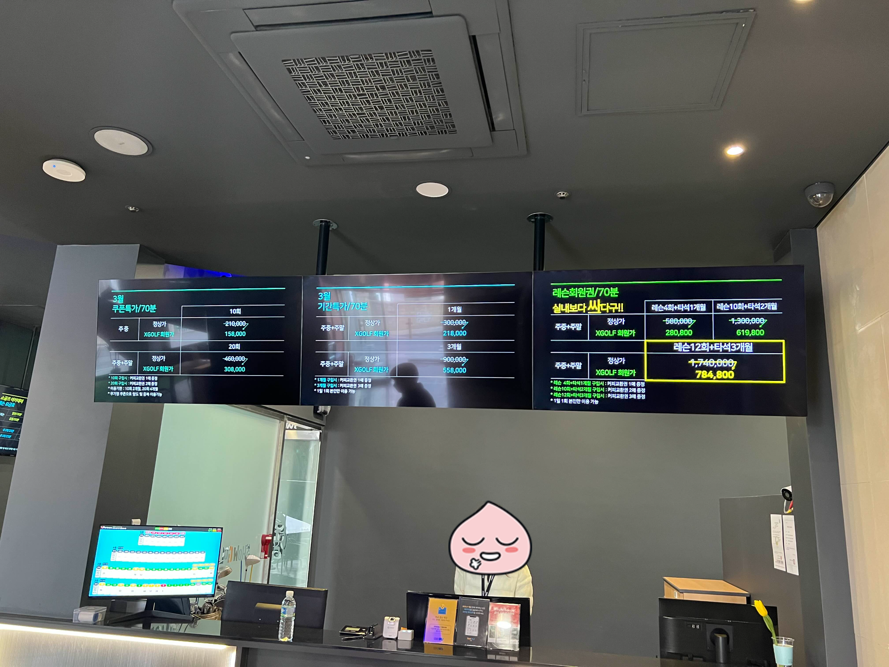 보통 인도어 연습장에서 원포인트 레슨 받으면 4-5만원인데 레슨 회원권으로 끊으면 30만원이 안되는 가격이지 상당히 저렴하다고 할 수 있다.