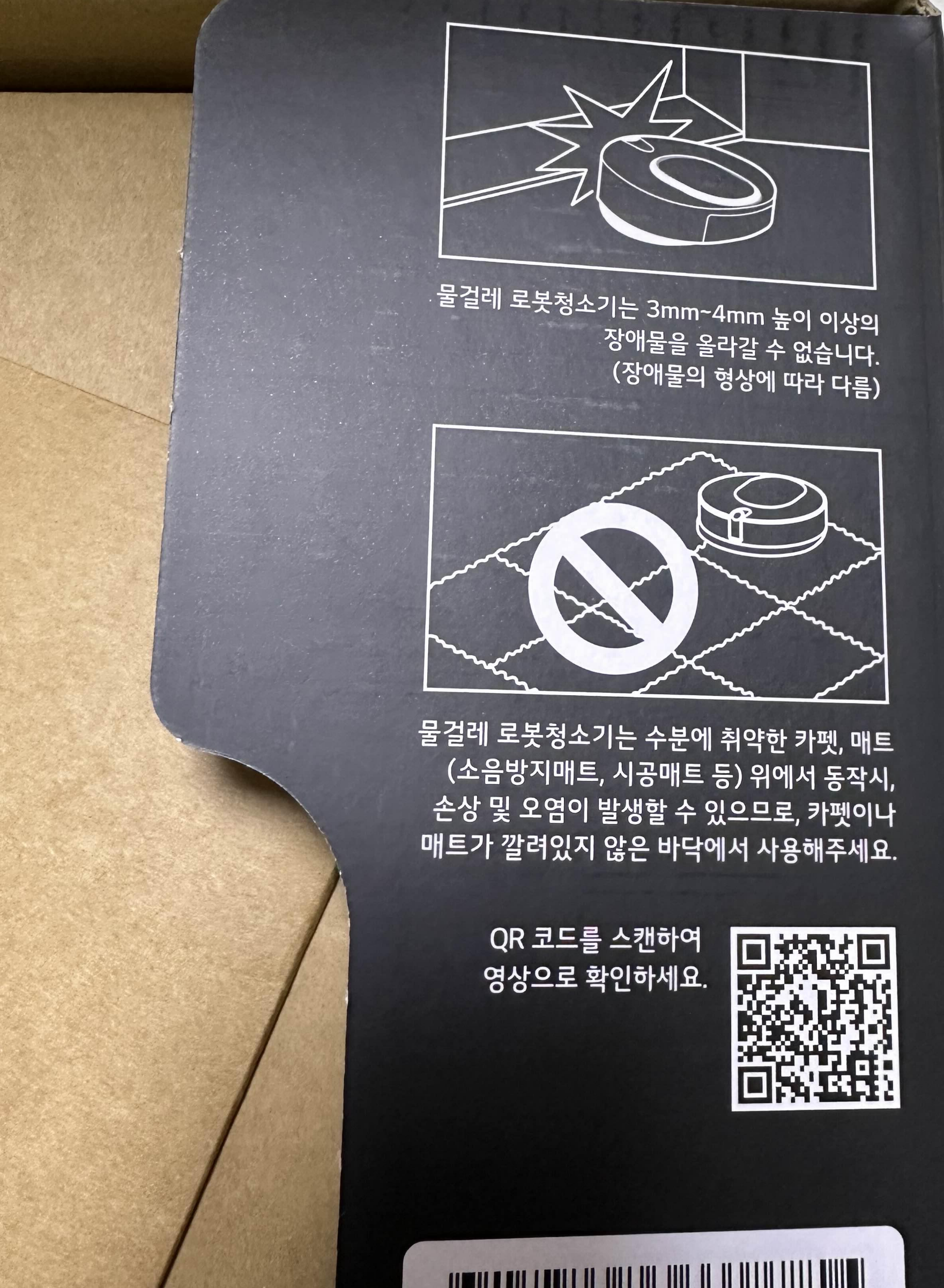 박스에 3mm-4mm 높이의 장애물은 안된다고 하는데 실제로 써본 결과 살짝 높은 카페트는 못올라가니 젖을 걱정할 필요는 없을 듯.