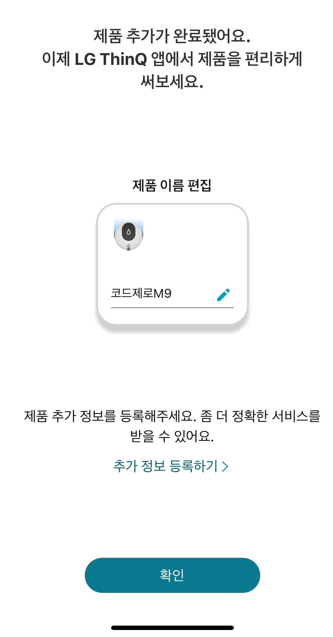 LG ThinQ 앱을 실행해서 바로 등록을 할 수 있고 등록하자 마자 내가 원하는 이름을 설정하게끔 가이드 해준다.